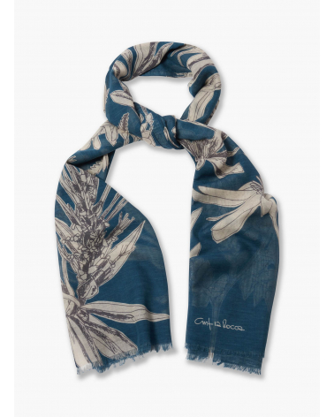 Maxi Schal aus Baumwolle und Leinen mit blau Blumendruck