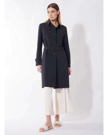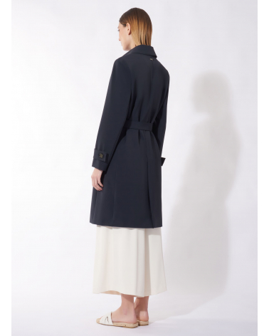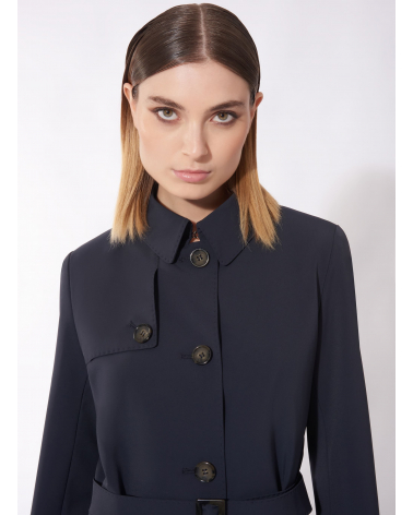 Einreiher Trenchcoat aus technischem Stoff mit maßgeschneiderten Nähten in blau