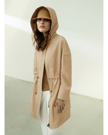 Parka aus regenabweisendem technischem Stoff in camel