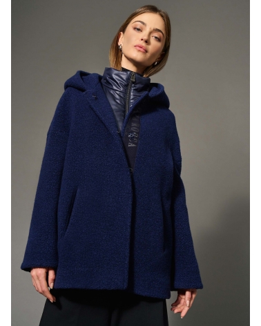 Kurzer Parka mit abnehmbarer Nylon-Weste aus Wolle in Blau