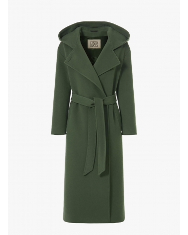 Maxi Gürtelmantel mit Kapuze aus Wolle und Cashmere in Militärgrün