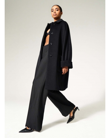 Oversized Mantel mit Hemdkragen aus reiner Wolle in Schwarz