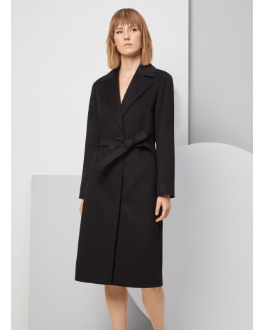 Taillierter Gürtelmantel aus reiner Wolle in Schwarz