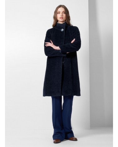 Ausgestellter Mantel aus Wolle und Alpaka in Blau