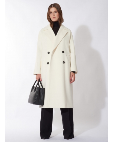 Oversized zweireiher Mantel aus reiner Wolle in Weiß