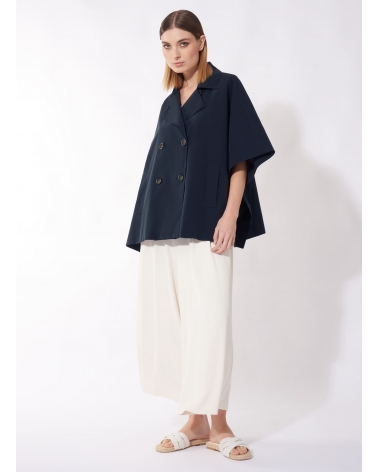 Zweireihiges Cape beige aus regenabweisendem technischem Stoff