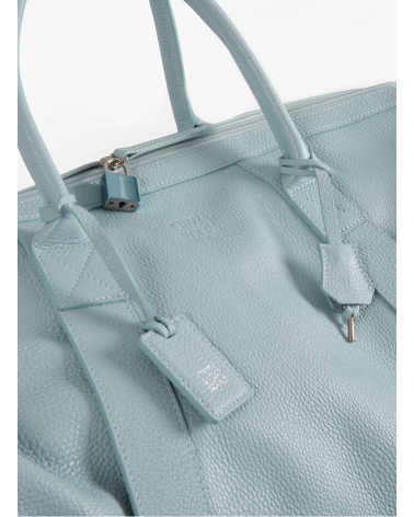 Light blue genuine leather duffel bag