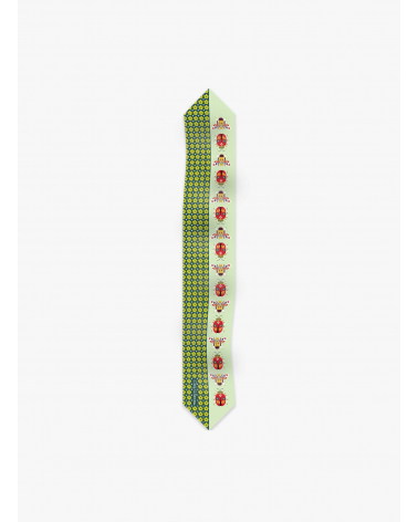 Green silk twill band with nature pattern