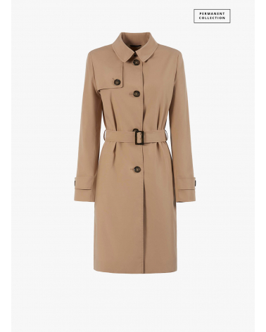 Rainproof tech taffeta camel trench coat