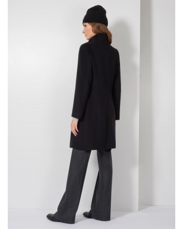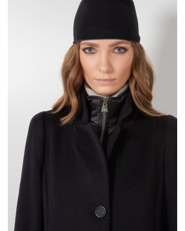 Black pure wool coat with detachable nylon bib
