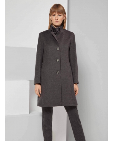 Grey pure wool coat with detachable nylon bib