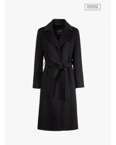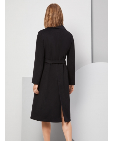 Belted fitted black pure wool coat