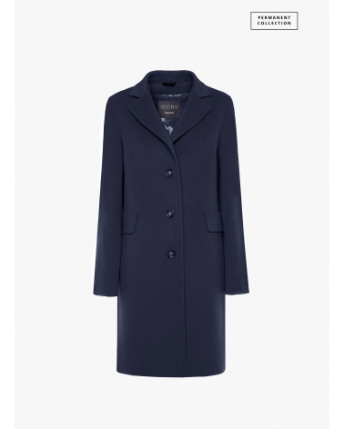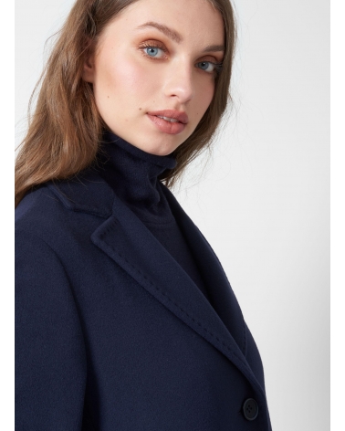 Straight blue wool and cashmere coat wuth masculine cut