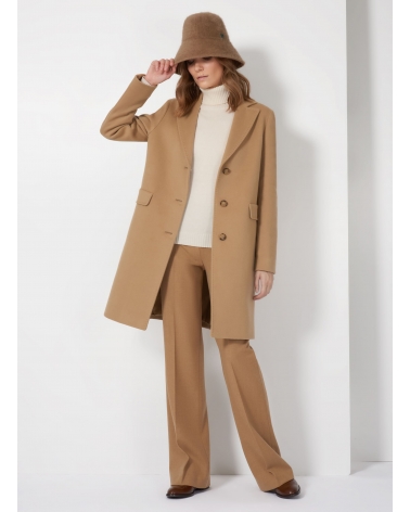 Straight light camel wool and cashmere coat with masculine cut