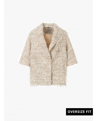 Oversized beige cape with fringes