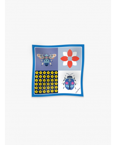 Piccolo foulard in twill di seta con fantasia naturale blu