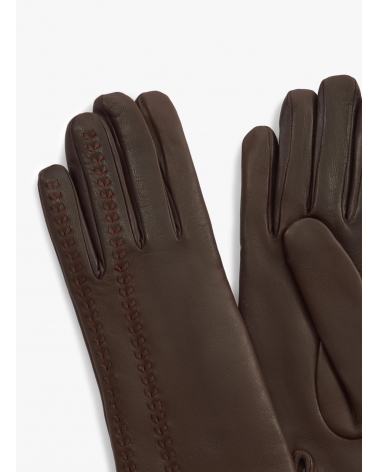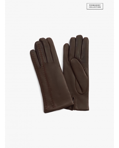 Guanti marroni in nappa con ricamo sul dorso