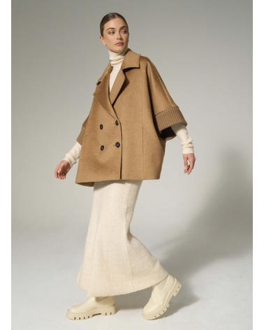 Mantella cammello in pura lana di cammello con inserti in maglia