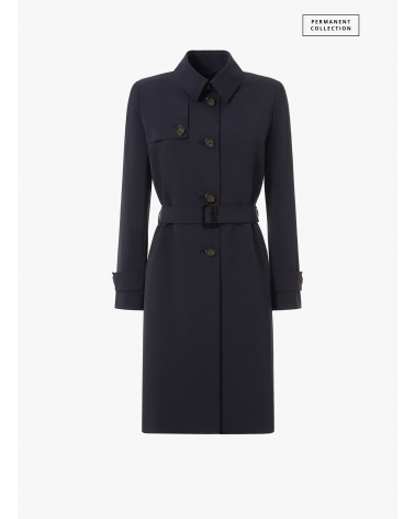 Trench monopetto blu in tessuto tecnico con impunture sartoriali