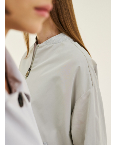 Bomber oversize grigio chiaro in tessuto tecnico antigoccia