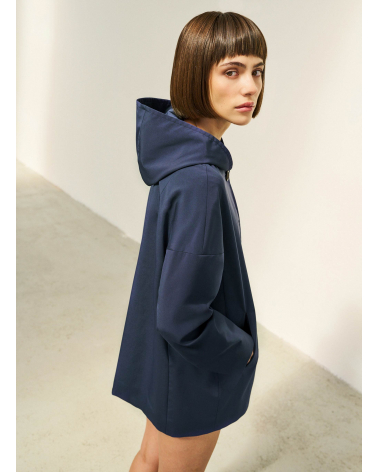 Giacca blu marino con cappuccio in tessuto tecnico antigoccia
