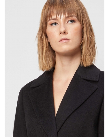 Cappotto nero con cintura in pura lana linea aderente
