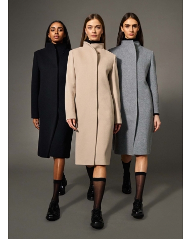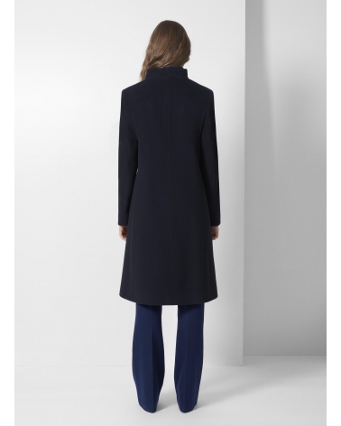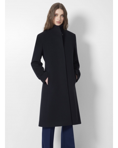 Cappotto blu in lana e cashmere con collo alto