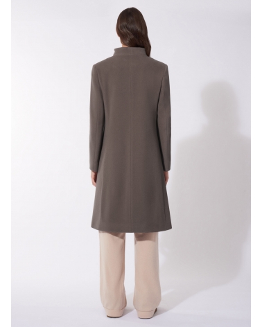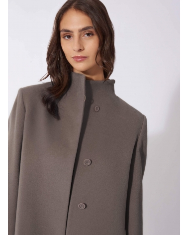 Cappotto taupe scuro in lana e cashmere con collo alto