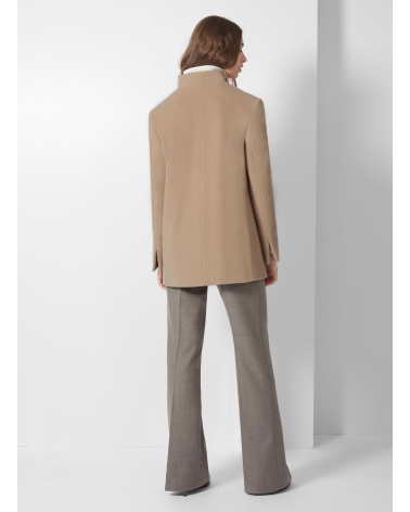 Cappotto corto cammello chiaro in lana e cashmere con collo alto