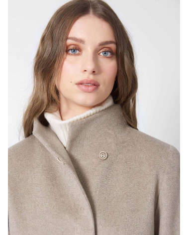 Cappotto beige scuro svasato in puro cashmere con collo alto