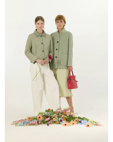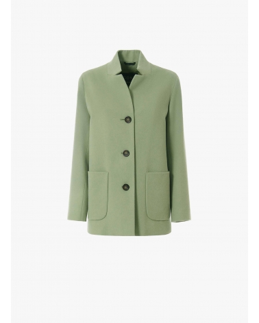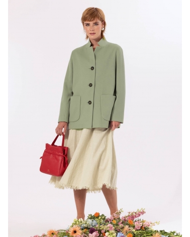 Giacca verde militare in pura lana con collo a rever rovesciato