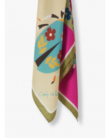Kleines Seidentwill-Schal mit natürlichem Muster in grün