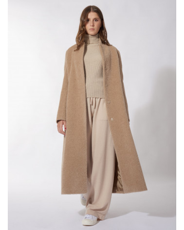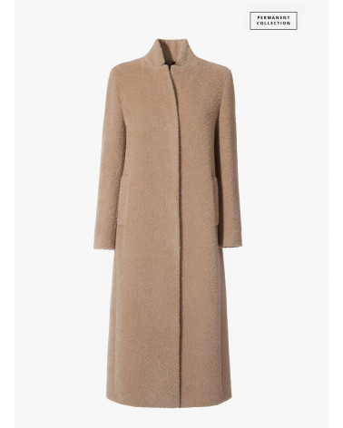 Langer Mantel aus Alpaka und Wolle mit umklappbarem Reverskragen in light Camel