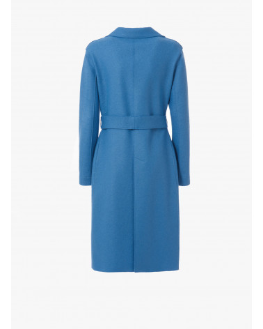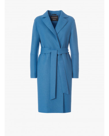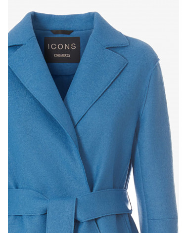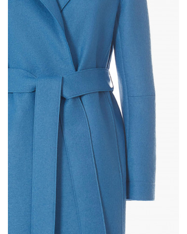 Gürtelmantel hellblau aus gekochter Wolle