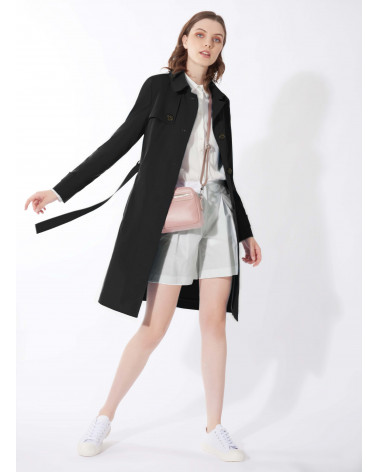 Einreihiger Trench schwarz aus regenabweisendem technischem Taft