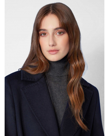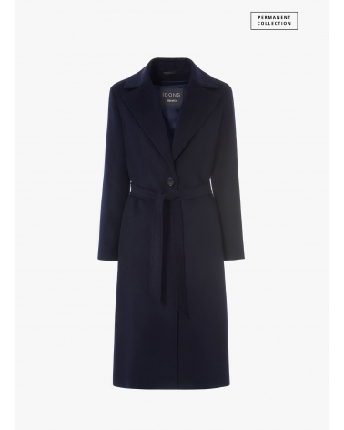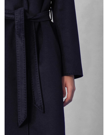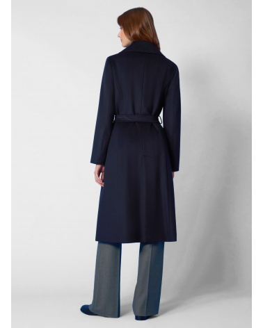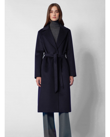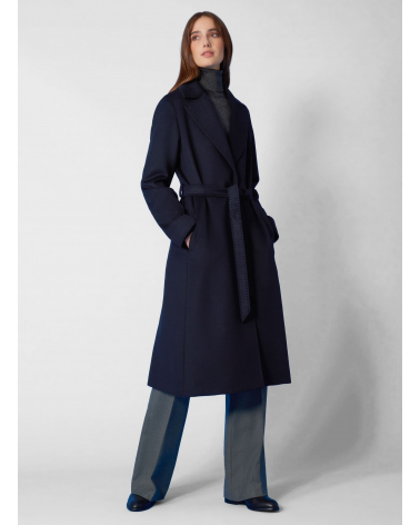 Taillierter Gürtelmantel aus reiner Wolle in Blau