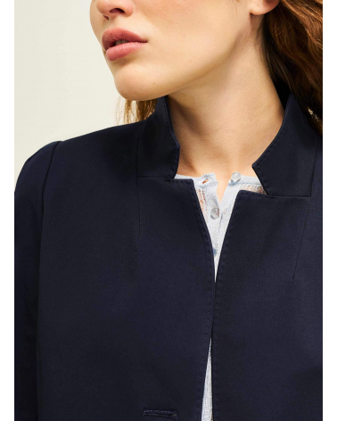 Stretch-Baumwoll-Kurzmantel mit umgeschlagenem Reverskragen in blau