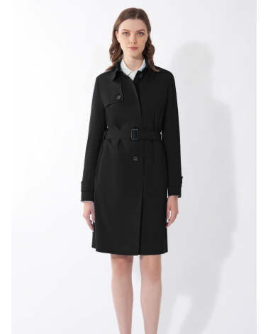 Einreihiger Trench schwarz aus regenabweisendem technischem Taft