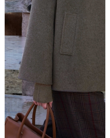 Ausgestellter Kurzmantel mit hohem Kragen in Dunkeltaupe