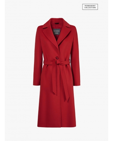 Taillierter Gürtelmantel aus reiner Wolle in Rot