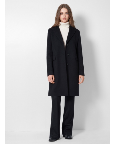 Gerade geschnittener Mantel im Herrenschnitt aus Wolle und Cashmere in Schwarz