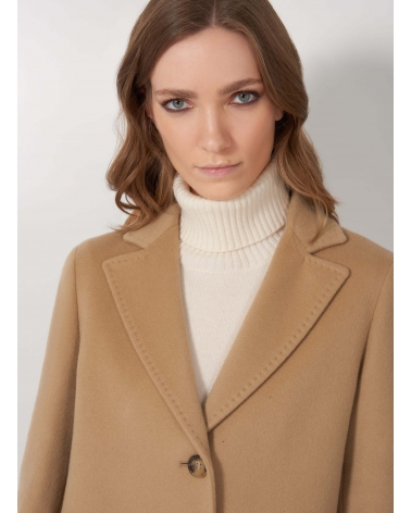 Gerade geschnittener Mantel im Herrenschnitt aus Wolle und Cashmere in light Camel