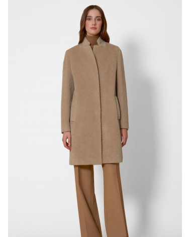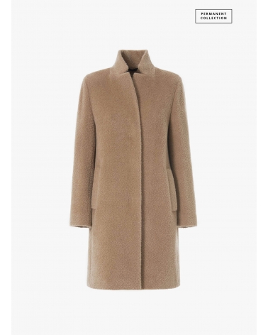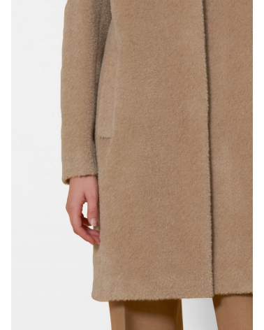 Mantel mit umklappbarem Reverskragen aus Wolle und Alpaka in dunkel Beige