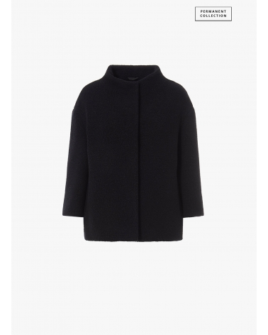 Kurzmantel mit 3/4 Ärmel aus Wolle in Schwarz