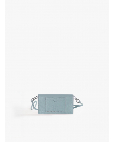 Light blue crossbody phone bag in genuine leather