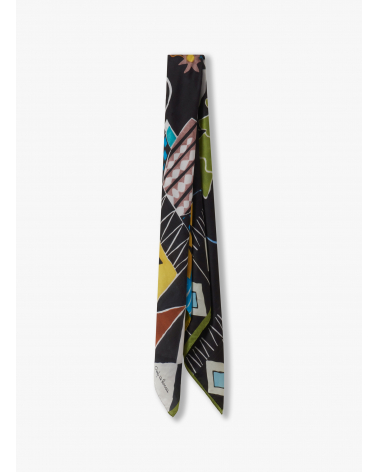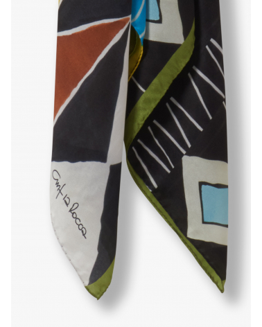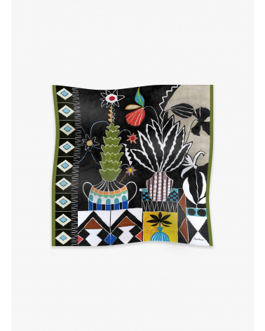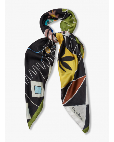 Black pure silk scarf with abstract nature pattern