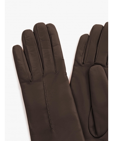 Brown nappa leather gloves with top stitch