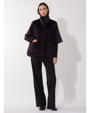 Purple alpaca and wool cape with patch pockets
