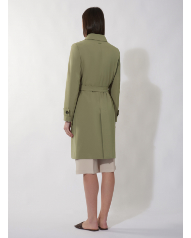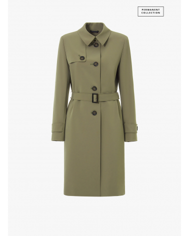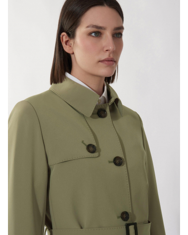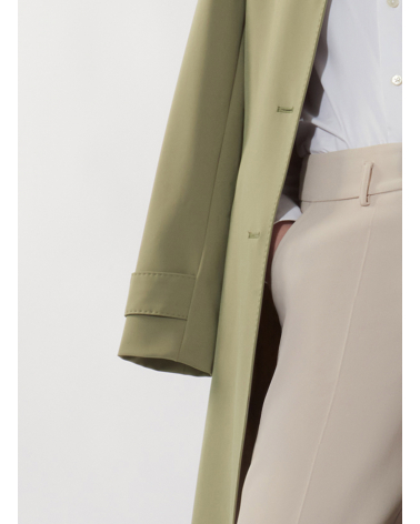 Single breasted military green trench coat in technical fabric with hand stitches