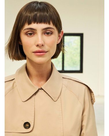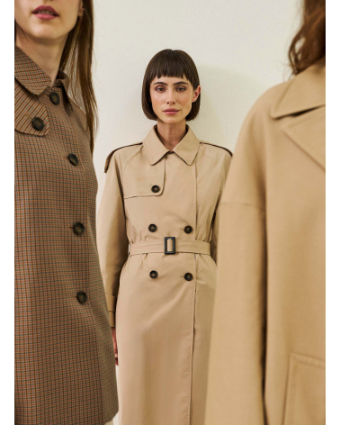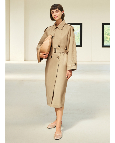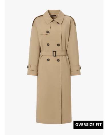 Oversized double breasted camel trench coat in rainproof technical fabric